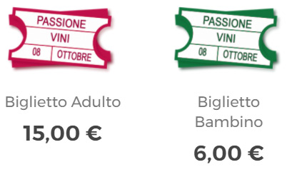 I biglietti adulto includono l’accesso alla manifestazione, bicchiere da degustazione con sacchetta porta bicchiere, un carnet di n° 2 degustazioni di vino con n° 2 assaggi dei prodotti dell'Azienda Agricola Fortunato.
